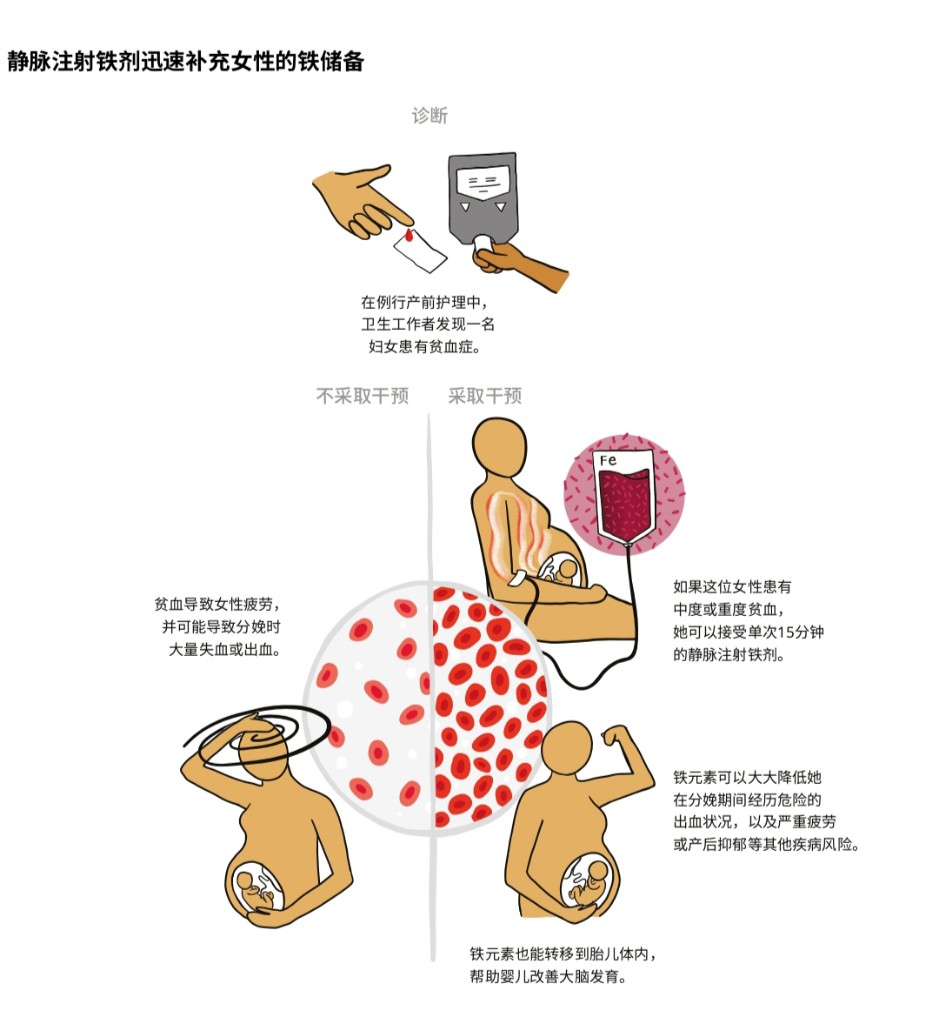 报告依据相关临床研究推荐了包括产后出血整合干预措施在内的7种简便易行的创新做法,包括与母乳混合喂养双歧杆菌以防止婴儿营养不良;为孕妇补充多种微量营养素补充剂可以将这些营养素转移到婴儿体内,进而提高婴儿的存活率;为孕期女性单次静脉注射铁剂,防止并治疗贫血,预防产后出血;给早产孕妇使用皮质类固醇,可加速胎儿肺部成熟,在短短几天内完成通常需要几周的发育;给孕妇使用阿奇霉素可以减少怀孕期间的感染,防止败血症的发生;普及人工智能便携式超声,帮助中低收入国家的护士和助产士监测高风险怀孕,做到早诊断、早干预。
