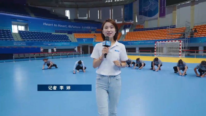 记者 李婷:地上是全新铺设的悬浮式地板和乳胶垫,来跳一下,弹性十足,能起到很好的保护和缓震作用。在赛后,这里具备承接各种国际级赛事的专业能力。