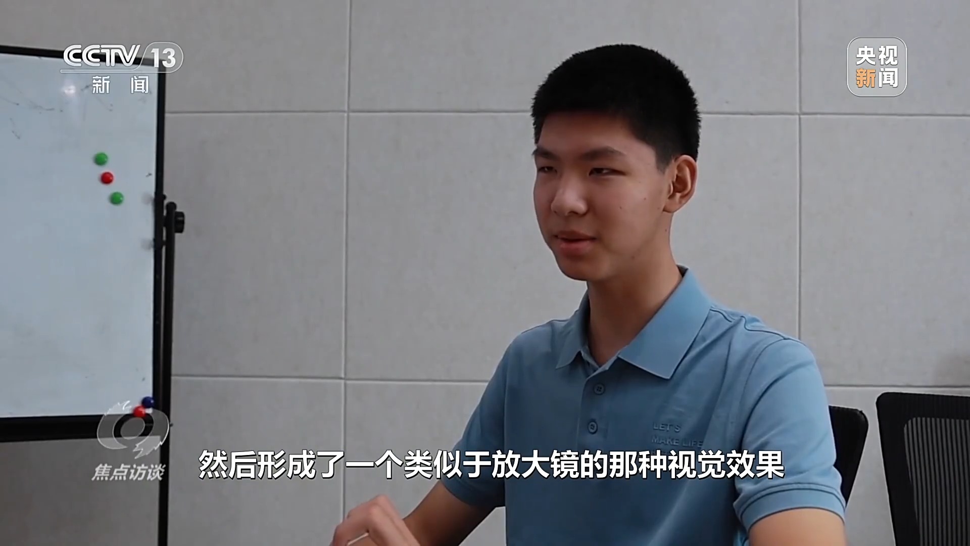 北京市育英学校学生 张育尔:我印象特别深的是当时航天员拿针筒把气泡注射到水里,然后形成了一个类似于放大镜的视觉效果,看到这个感觉很新鲜、很科幻。一开始是好奇心驱动了,后来就开始了解这方面的东西。