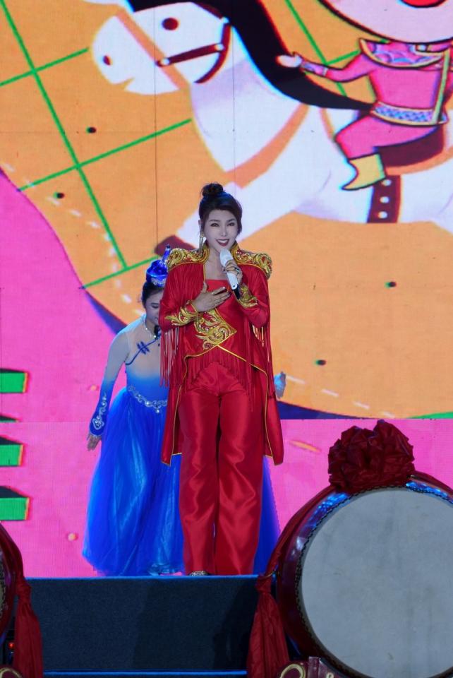 一身热情的“中国红”礼服搭配干练的“小丸子”发型,让乌兰图雅整个人看起来神清气爽,活力满满。舞台大屏幕上播放的MV中,乌兰图雅活泼的卡通动漫形象引得年轻观众纷纷拍照,直呼好萌!
