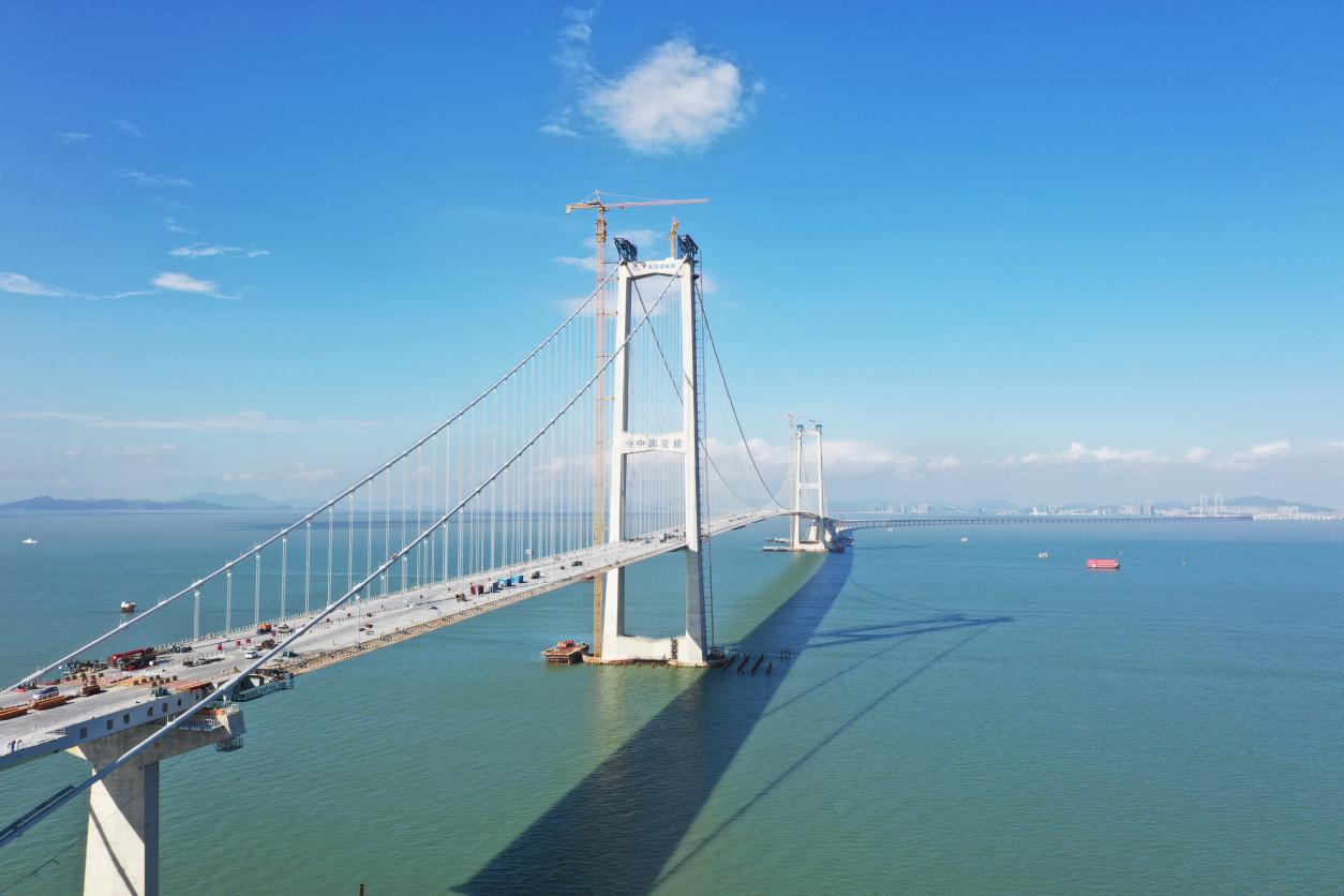 深中通道是集“桥、岛、隧、水下互通”于一体的跨海集群工程,全长约24公里。其中伶仃洋大桥主跨1666米,主塔高度为270米,相当于90层楼高,是世界上最大跨径海中钢箱梁悬索桥和世界上最高通航净空尺度的跨海桥梁。