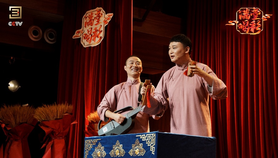 《满堂喝彩》首次走出演播厅,来到孕育出陕西曲艺的三秦大地,让观众在主持人与嘉宾的带领下,欣赏当地原汁原味的曲艺表演,与曲艺人们欢乐互动,“沉浸式”感受当地曲艺氛围,既看了热闹,也听了门道。相声《我是唱作人》通过吉他与快板的结合,将“说学逗唱”中的“唱”发挥得淋漓尽致;新编榆林小曲《掐蒜薹》呈现出传统曲艺与流行音乐的“双向奔赴”。看曲艺新生代将传统与新潮结合,让曲艺文化焕发出全新生命力。