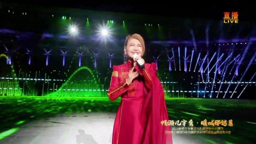 随着“汹涌的波涛”逐渐褪去,在最唯美最静谧的时刻,乌兰图雅一身红色盛装,高贵而典雅,在聚光灯的追随下,款款走到会场中央,当《站在草原望北京》的音乐声响起,乌兰图雅脚下的大地,时而金色麦浪翻滚,时而绿色田野浩荡,恢弘大气的视觉景观,与乌兰图雅的歌声相辅相成,歌声与场景美妙幻化,令人叹为观止。当“我站在草原望北京,青青山岗心旷神怡,让心放飞这喜悦的心情,吉祥彩云献给你”响彻云霄时,体育场周边,刹那间五彩缤纷的焰火腾空而起,与乌兰图雅的歌声一起直冲云霄,映红了天空,染绿了大地,绚丽了人间。