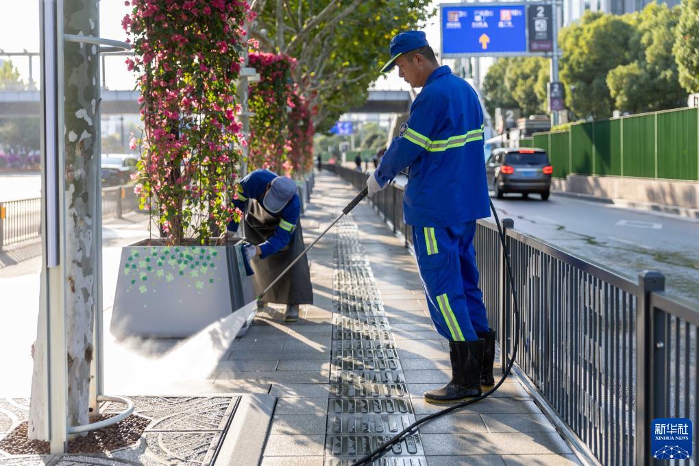 10月31日,环卫工人在场馆周边进行清洁工作。新华社记者 王翔 摄