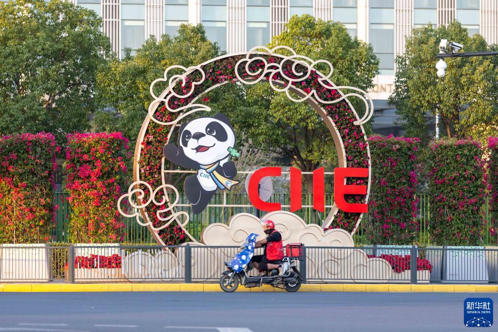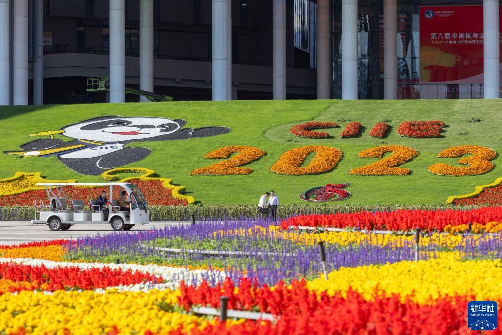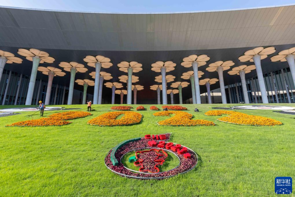 10月31日拍摄的国家会展中心(上海)南广场。第六届中国国际进口博览会即将在上海举行,国家会展中心(上海)装点一新,迎接八方客商。新华社记者 王翔 摄