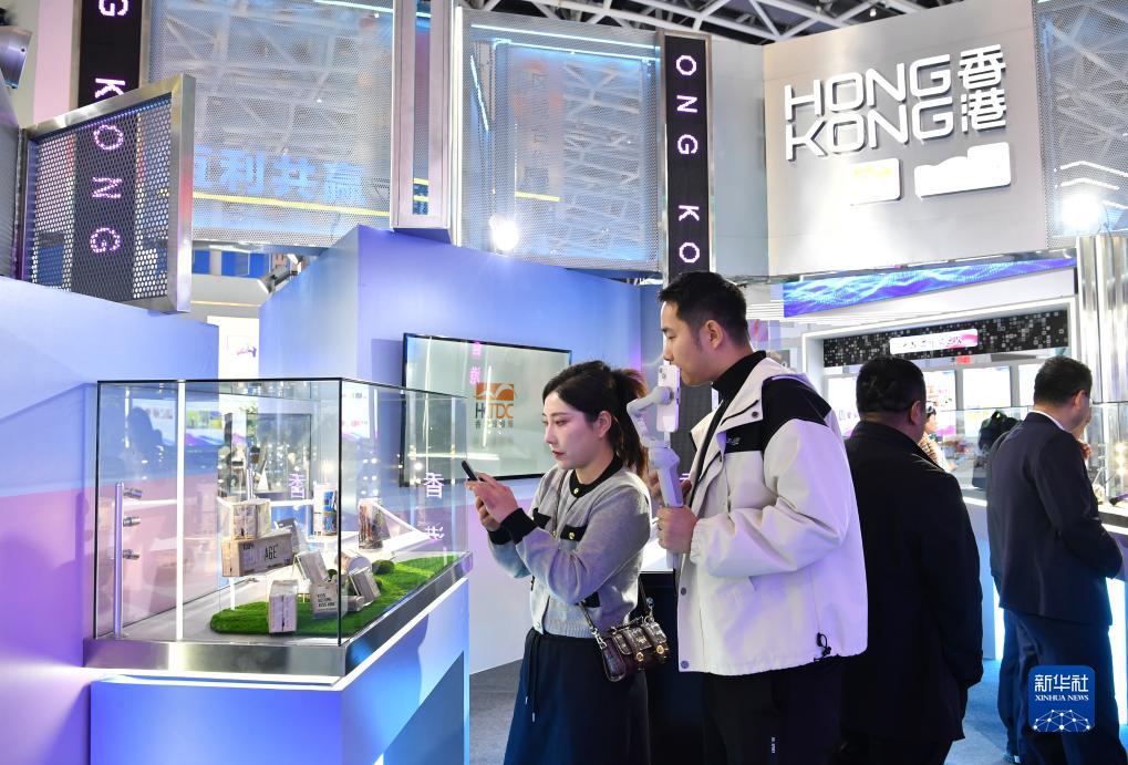 11月16日,观众在第七届丝博会香港展位参观。新华社记者 邵瑞 摄