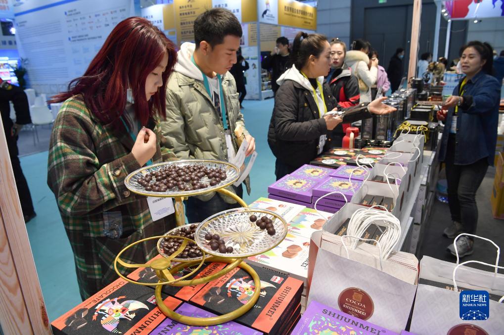 11月16日,观众在第七届丝博会印度尼西亚展位上参观选购食品。新华社记者 邵瑞 摄