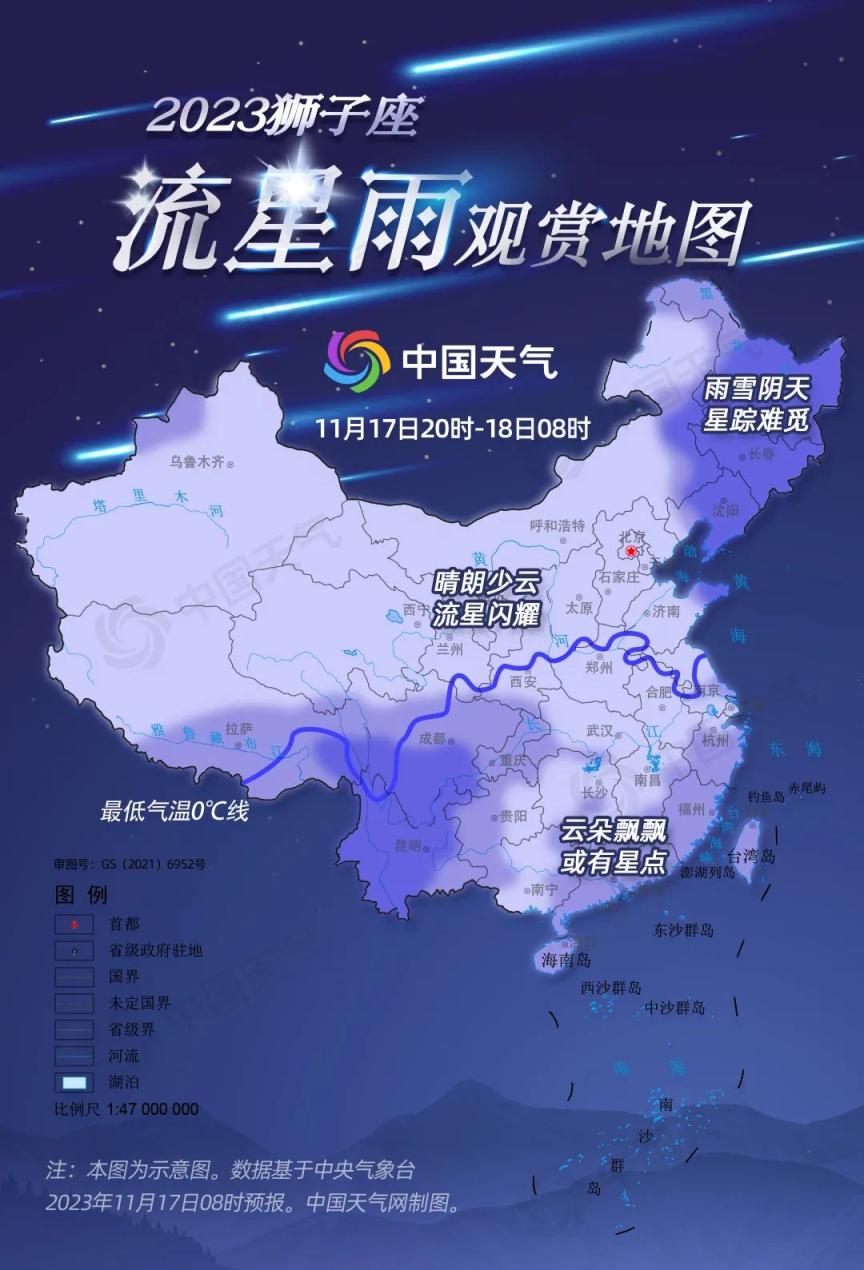 一年一度的狮子座流星雨要来了!有着“流星雨之王”称号的狮子座流星雨向来是11月份的天象大戏,今天(11月17日)夜间至明天凌晨将是本次流星雨的最佳观赏时段。中国天气网特别推出2023狮子座流星雨观赏地图,快来看你那里是否能守候到闪耀的流星吧!