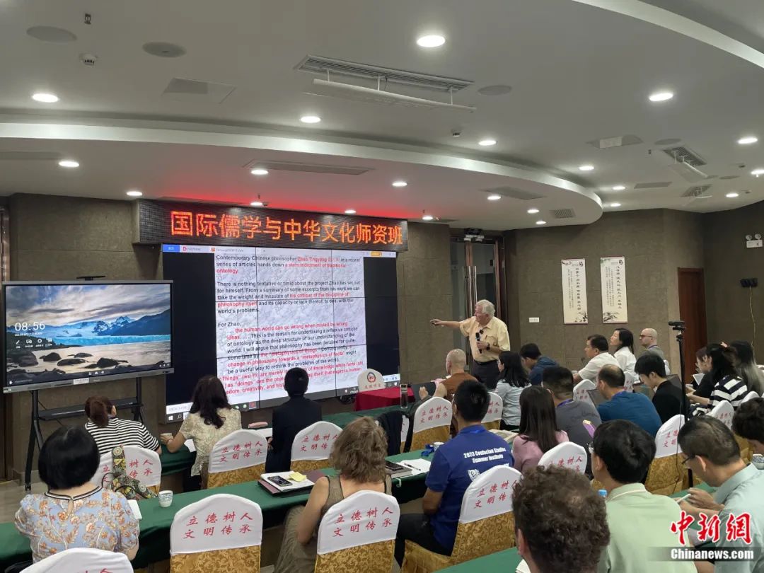 2023年8月15日,中西比较哲学家安乐哲在给学生们讲课。李国庆 摄