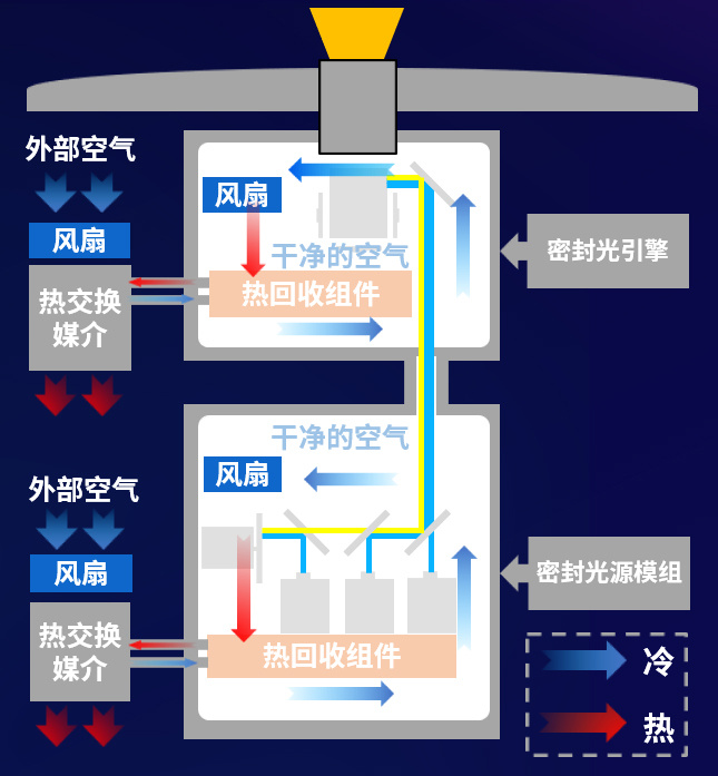 值得一提的是,晓风系列NC603L+还沿袭了NEC激光放映机的CCT双腔体密封内循环散热技术,可在有效隔绝灰尘侵入光源和光引擎的同时,大幅提升机器内部的散热效率,为其持久稳定的高品质放映提供保障。