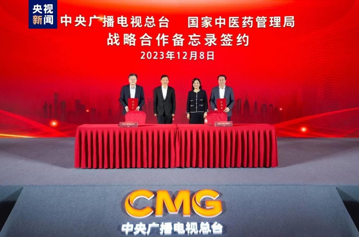 中央广播电视总台华语环球节目中心主任李欣雁与国家中医药管理局综合司司长王思成代表双方签署《中央广播电视总台与国家中医药管理局战略合作备忘录》。根据备忘录,双方将坚持资源共享、优势互补、协同创新、发展共赢原则,在宣传报道、媒体融合、国际传播等领域开展务实合作,促进中医药高质量发展。