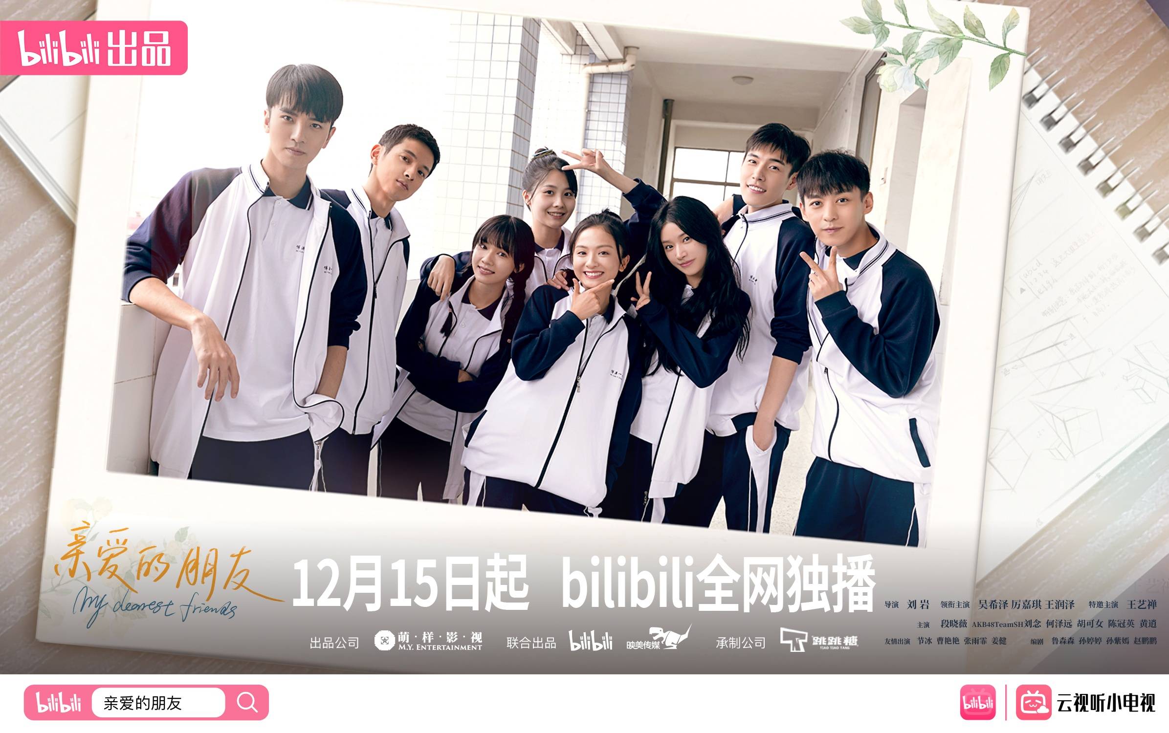本次《亲爱的朋友》出品方萌样影视致力于打造精品剧集,曾出品制作《那些年,我们一起追的女孩》《小时代》、《我的青春都是你》、新版《流星花园》等作品,口碑与流量兼具,擅长聚焦热点话题,以创新手法拍摄更受年轻观众喜爱的影视作品。承制方跳跳糖影视,作为行业内新秀公司,坚持以高要求的制作标准,打造精良作品,全力为《亲爱的朋友》品质护航。期待未来看到更多真实用心的精品剧集!