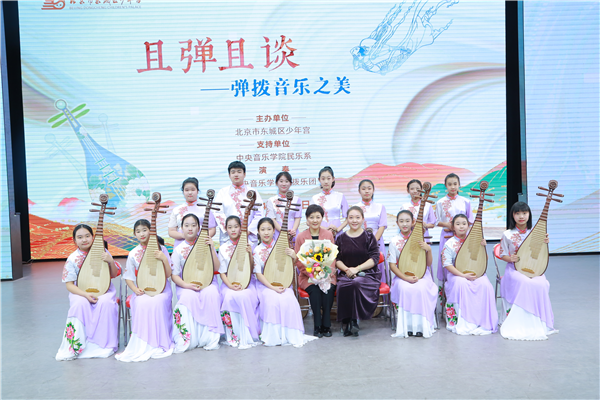 中国传统民族音乐蕴含着丰富的中华文化,是重要的美育资源。1月7日下午,由北京市东城区少年宫主办,特邀著名琵琶教育家、演奏家章红艳教授携中央音乐学院弹拨乐团同东城区少年宫琼音琵琶乐团师生一起在少年宫剧场为喜爱民族音乐的师生和家长献上了主题为“且弹且谈——弹拨音乐之美”的艺术交流活动。