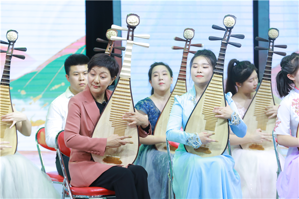 活动中,中央音乐学院弹拨乐团演奏了《平湖秋月》《早春》《十八板》等七首曲目,充分展现了琵琶、古筝、扬琴、大阮等民族器乐的魅力。更为可贵的是章红艳教授聚焦民族器乐如何守正创新、推陈出新,不断增强中华优秀传统音乐艺术的传播力、影响力结合每一首乐曲进行了精彩的音乐导聆。活动最后,章红艳教授亲自带领中央音乐学院弹拨乐团与东城区少年宫琼音琵琶乐团共同演奏了《阳春白雪》,为少年宫学员提供了一次高层次、高水平的学习实践机会。