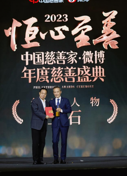 活动上,王石作为在环保、公益领域中国企业家群体履行社会责任、参与社会治理的领军者,以及积极倡导双碳美好生活,连续多年出席联合国气候变大大会,为应对气候挑战贡献中国力量的代表者,被授予2023年度人物奖项殊荣。