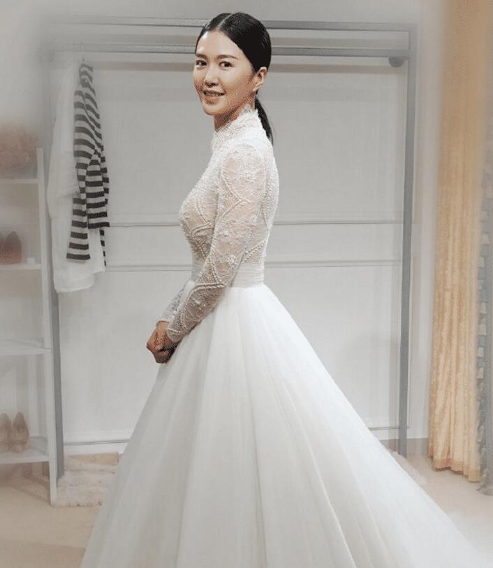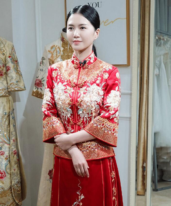 而换成中式婚纱的谭维维也依旧美丽,小编不得不数,谭维维无论是中式婚服还是西式的婚纱都能穿出一种特有的感觉来。只是女神只是露出了三分之二的脸,有点可惜。