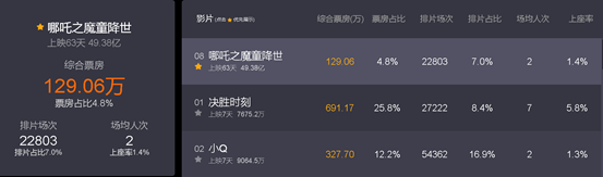 从7月上映开始,《哪吒》一路横扫暑期票房,并频频刷新纪录:上映1天票房破亿,上映8天登顶动画票房冠军。