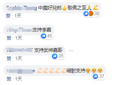 在脸书评论区,有众多网友留言对李嘉表示支持↓