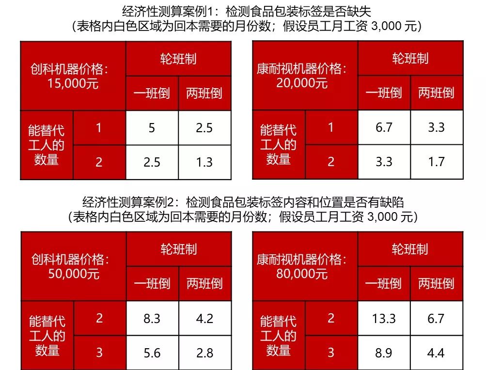 一般来说,如果设备的回本周期在12个月以内,对工厂有较高吸引力。以食品包装检测为例,工厂安装工业视觉系统的回本周期普遍在2-8个月,具有明显的经济性。未来随着用工成本的不断增加,以及工业视觉零部件国产化使得设备价格的不断降低,工业视觉系统的经济性将更加显著。
