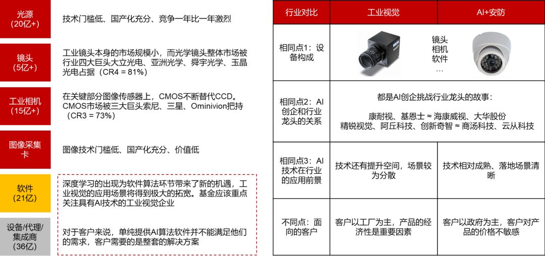 不过需要注意的是,只能单纯提供AI算法软件并不能满足客户需求。因此,具有AI技术并能提供整套解决方案的工业视觉企业将受到追捧,关键能力包括AI技术水平、行业理解、客户资源、提供整体解决方案的能力。
