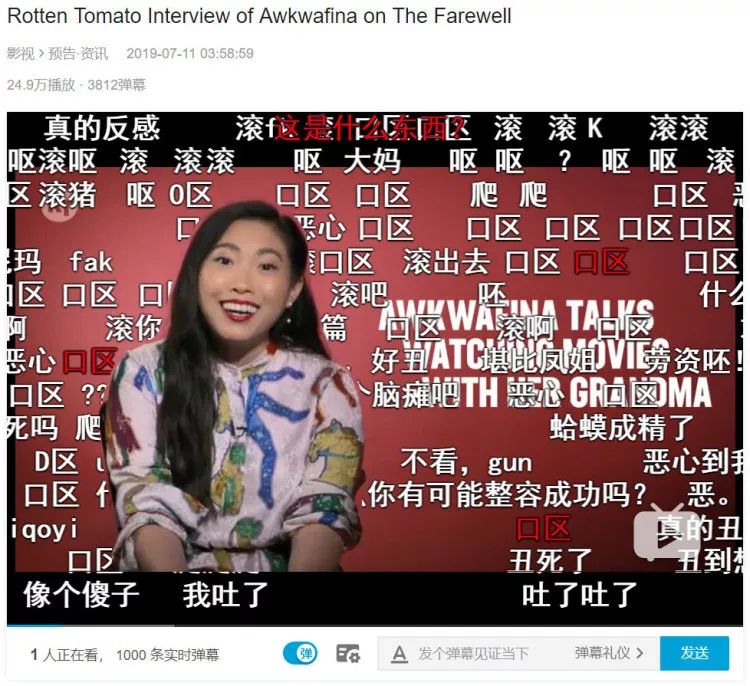 这某种程度上是这些观众对电影女主角奥卡菲娜的恨屋及乌。早在2019年下半年传出内地要引进这部全部由亚洲演员主演的美国电影时,国内互联网就曾上演过非常魔幻的一幕,舆论聚焦在奥卡菲娜并不出众、甚至是低于大众普遍审美的外表上,并认为她高颧骨、眯缝眼、塌鼻梁的面部特征是典型存在于西方人审美中的亚裔标志,少不了恶言相加。
