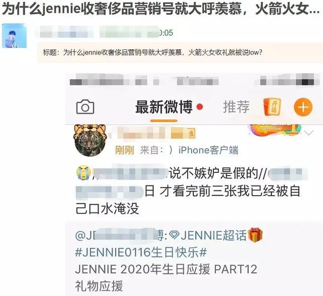 恰好又赶上韩国女子组合BLACKPINK成员Jennie的生日,国内粉丝组织应援,大送奢侈品,不少博主转发表示羡慕。