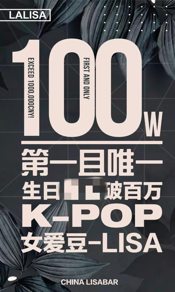 更令人惊讶的是,不少韩星粉丝还会互相比拼,像与Jennie同团的泰籍成员Lisa,就因生日应援金额破百万而进行抽奖,还制作成海报炫耀,称自家是第一个且唯一一个生日应援金额破百万的K-pop女爱豆,很是骄傲。