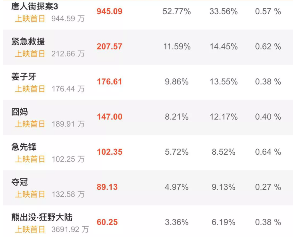 其实除了《唐人街探案3》,林超贤的《紧急救援》也有两百多万票房,最神奇的是徐峥的《囧妈》还有一百多万票房。很多人不理解,有人冒险去看《唐人街探案3》和《紧急救援》可以理解,徐峥的《囧妈》不是卖给网络免费播出了吗?怎么还有票房呢?