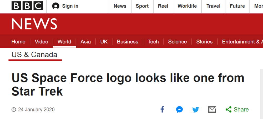 BBC称,许多推特用户表示,这一徽标与科幻影视作品《星际迷航》中出现的徽章“惊人地”相似。