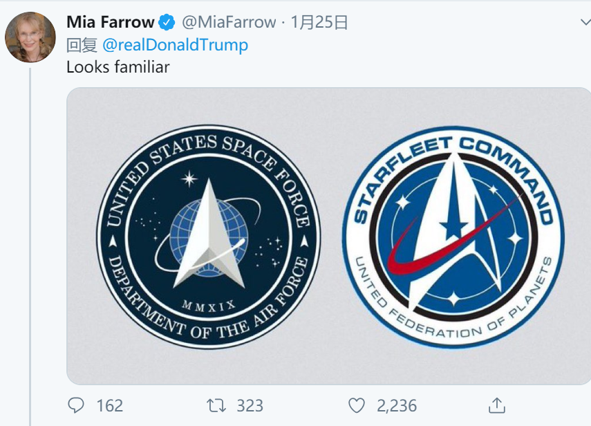 英国广播公司(BBC)24日报道称,当天,美国总统特朗普在推特上“揭幕”美太空军新徽标,却似乎被网友们嘲讽“抄袭”科幻影视作品《星际迷航》中的徽章。
