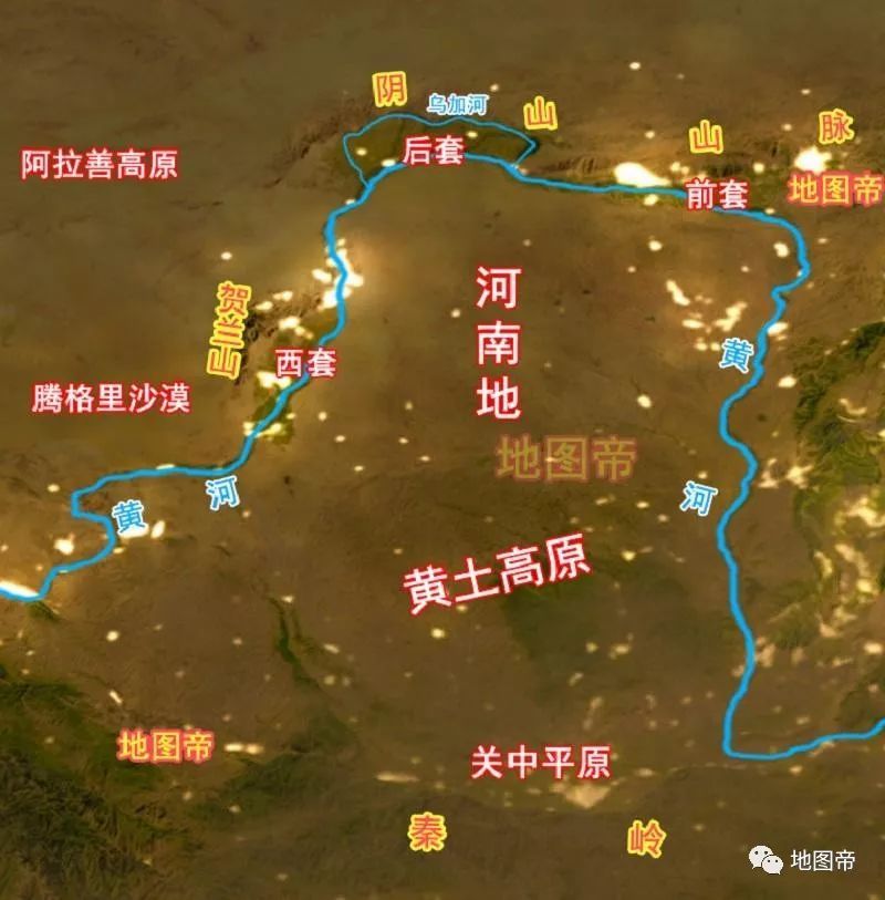 河套平原主要有三部分构成,前套、后套和西套。秦汉时期,黄河在后套平原的干流和今日有些区别,当时的黄河干流河道在北河,即如今的黄河支流乌加河,秦时河南地在后套平原的北界便是此黄河古道。后来随着泥沙和狼山山洪冲积,使得河床抬高,黄河的干流南移。至于前套平原,之前为赵国领地,置九原郡和云中郡,赵国灭亡后,领地被秦继承。也就是说,在秦朝时,前套并不是河南地的范围。