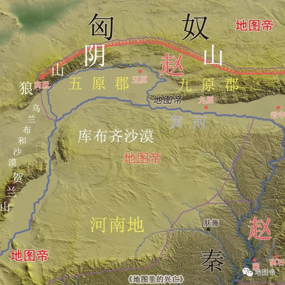 综合起来看,河南地的大致范围就是从兰州开始黄河北流段以东,秦昭王长城以北、以西,阴山以南赵国九原郡以西的这片区域。