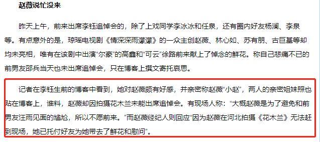 此外,李钰的告别仪式上,赵薇因为赶拍电影《花木兰》未能赶到现场,但通过朋友给其家人带去慰问。