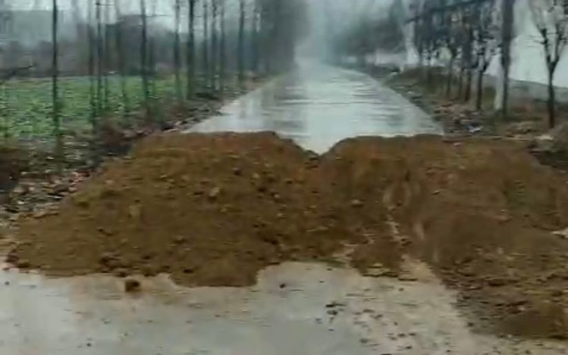 周口市扶沟县十里店村用土堆封路。受访者供图