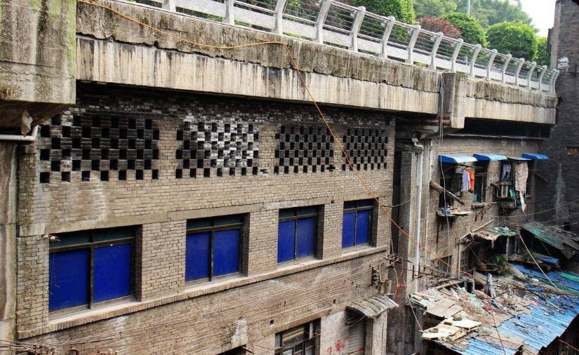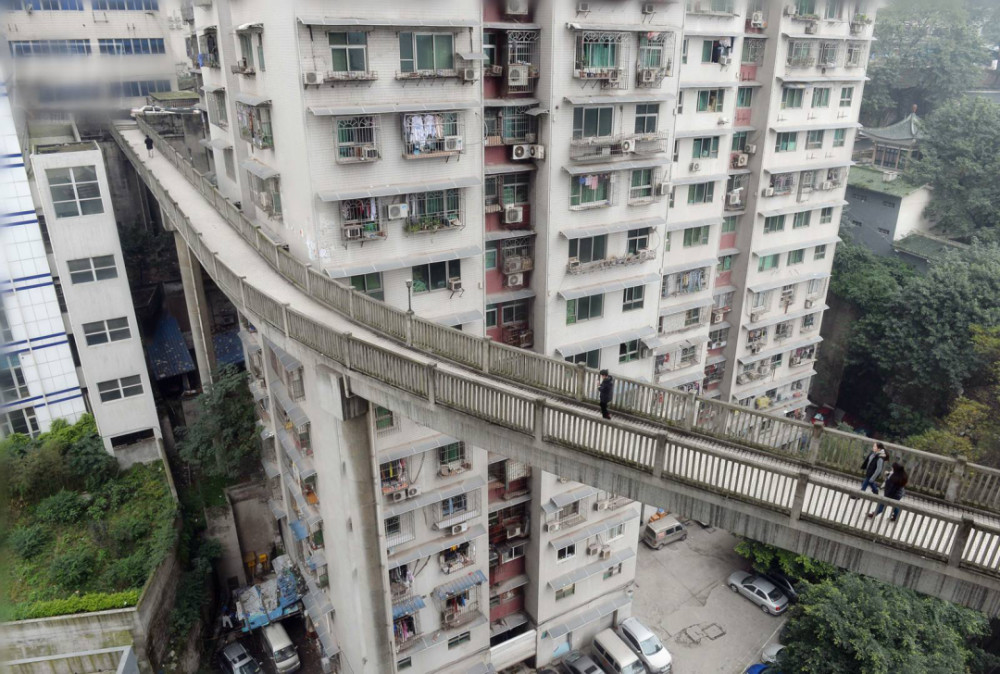 这座违建的居民楼位于重庆市渝中区南区路的路面下方,之所以能在路面的下面建楼房,是因为南区路的下面是有空隙的,所以居民就在这个空隙之中修建了楼房,因此南区路的底部就成了楼房的屋顶。楼房的宽度只有3米,每栋楼之间的距离大约有1米的样子,只有一面可以采光。因为实在路面下面,所以不容易被发现。
