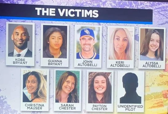 另外七名遇难者分别是56岁棒球教练约翰-阿尔托贝利,他的妻子Kerith、女儿Alyssa也在事故中去世,Alyssa年仅13岁。