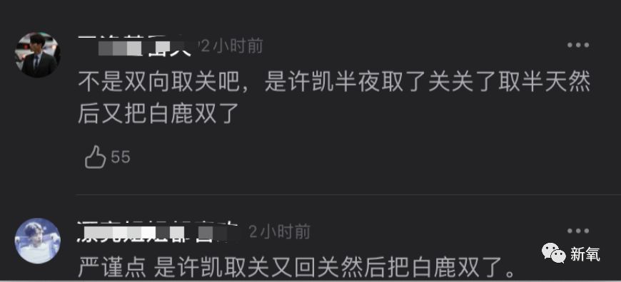 起因是有网友发现许凯在微博上把白鹿取关了。