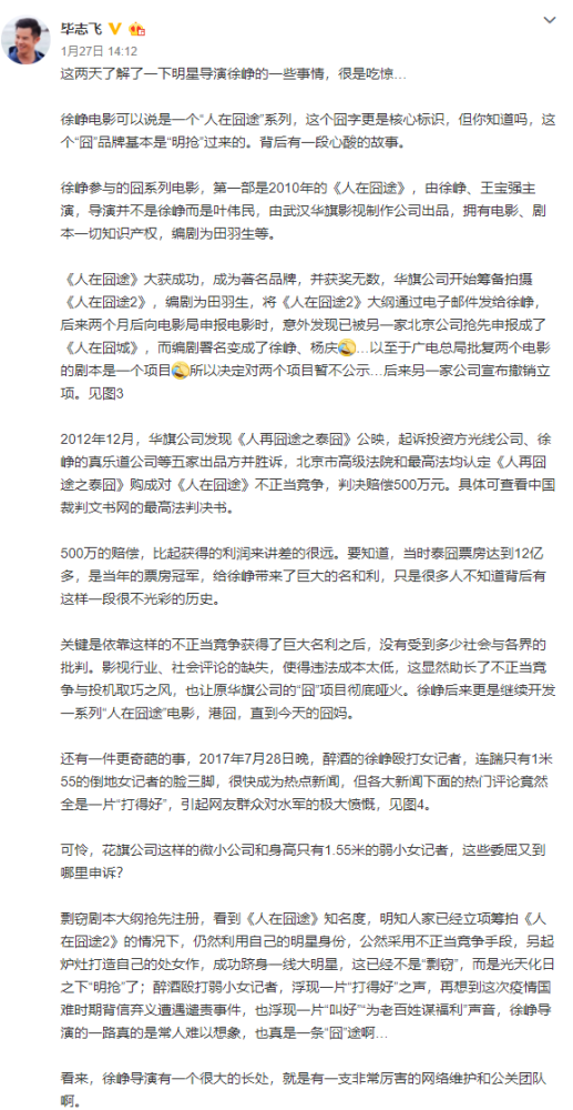 只是看到毕志飞导演的喊话,第一感觉就是:蹭热度;第二感觉就是:打抱不平;第三感觉就是:怀才不遇;第四感觉就是:佩服别人操作牛皮痛恨自己的操作太差!