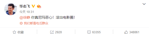 毕志飞导演喊话徐峥:滚出电影圈!顺带揭露徐导黑历史,背后原因不就是眼红