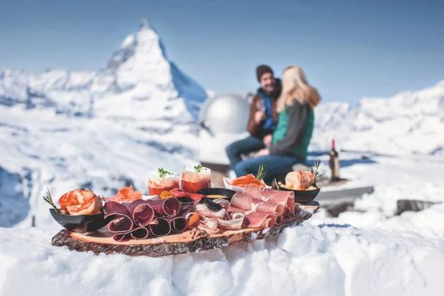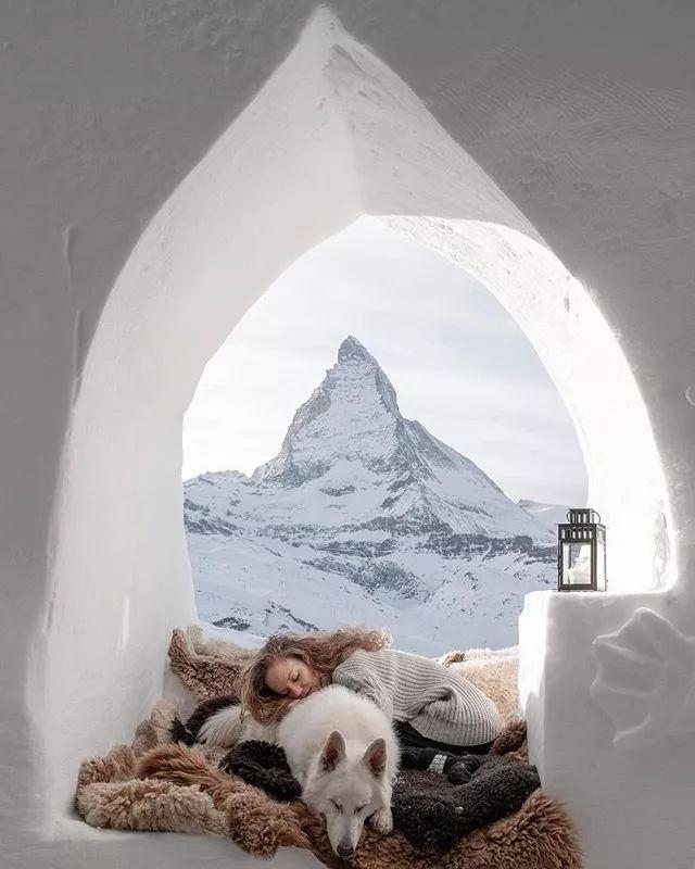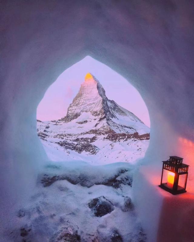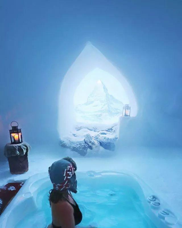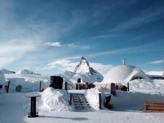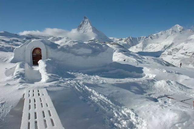 冰屋可不是只有北欧有,阿尔卑斯山冰屋村位于马特宏峰半山腰,海拔2772米。每年的12月初,这里就开始用"雪块"营造出冰雪中的奢华圆顶冰屋,向世界各地的游客开放。