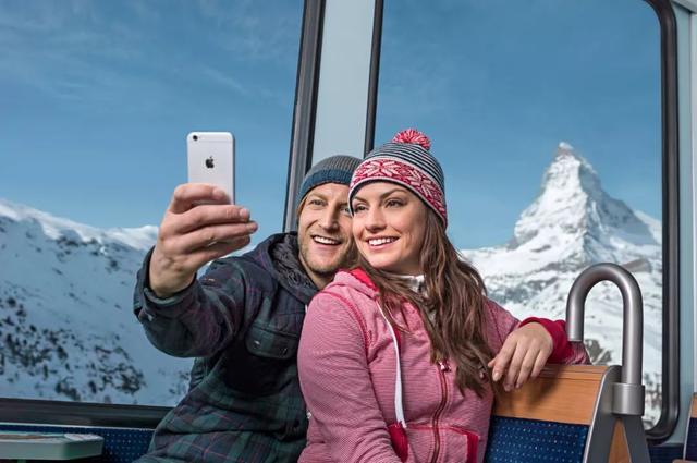在这里还要给大家分享个选座小秘诀——一定要靠右坐,因为这样可以看到以马特宏峰为背景的采尔马特山城全景!