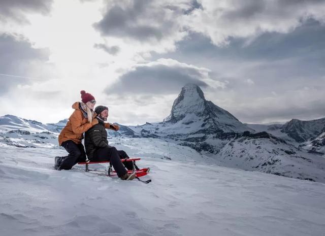 Rotenboden 到 Riffelberg不光适合徒步,也是滑雪橇的好去处,乘坐平底雪橇,一路向下,有些许刺激,又能欣赏沿途绝美风光,而且没有门槛,男女老少都能轻松掌握。