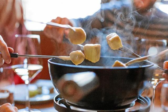 往锅里放入2-3种奶酪,加白葡萄酒烧热化开,做出“奶酪锅底”,然后将切成小块的面包蘸上溶化的奶酪吃。现在每个地区都有自己的特色,不过几乎是家家户户都会做的美食,完全不用担心踩雷~