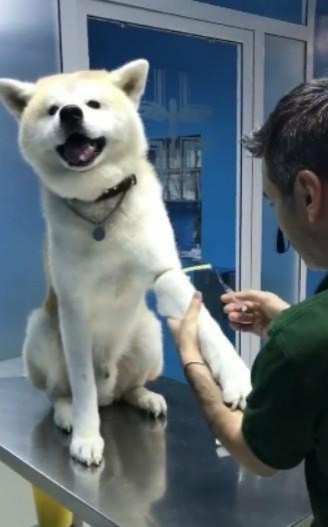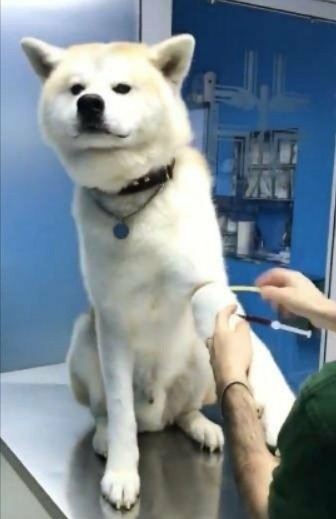 狗狗长这么大,还是第一次抽血,那么粗长的针头,我都害怕,没想到狗子超级勇敢,一脸淡定、甚至很不屑地抬起一腿递到医生手中。