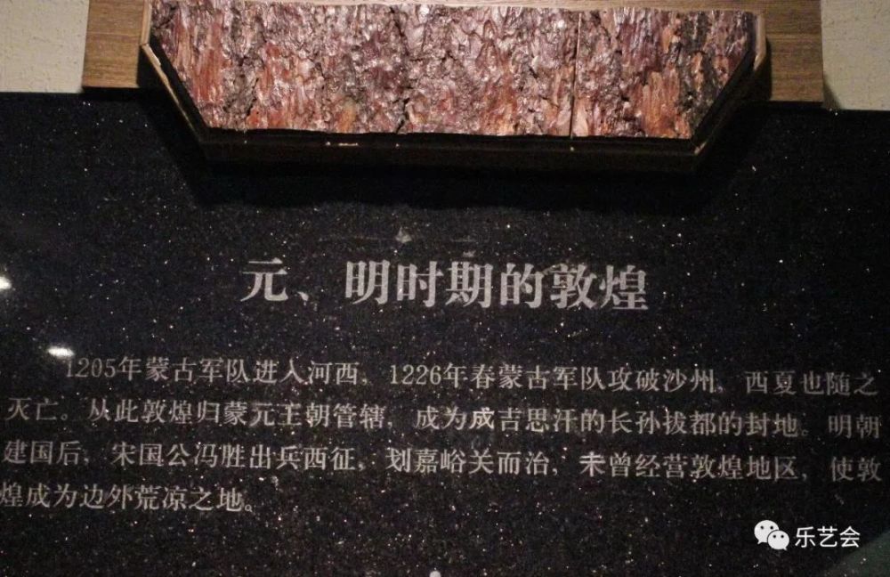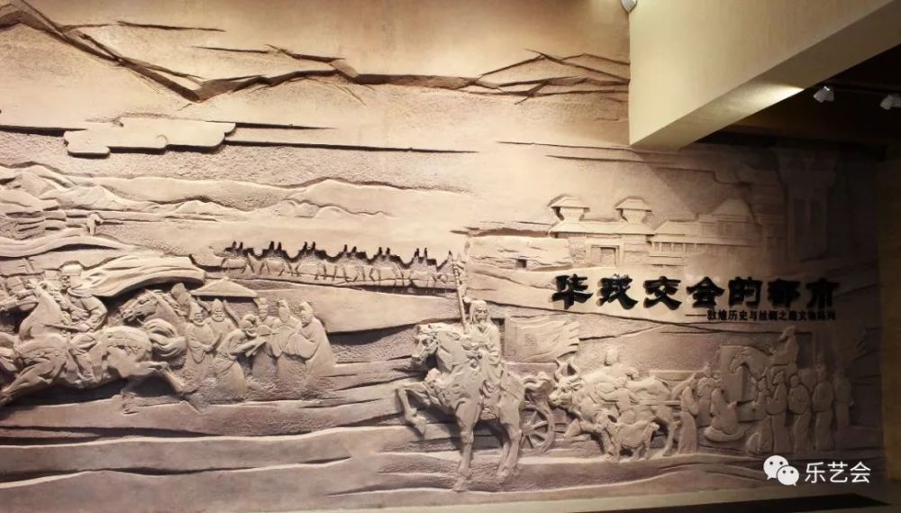“华戎交会的都市”为主题的浮雕、敦煌及周边文物分布图、敦煌古代大事年表、敦煌历代建制沿革表。主要介绍敦煌史前文明。敦煌地区早期的居民羌戎、乌孙、月氏族活动的情况以及匈奴在敦煌的活动情况,把观众的情绪带入敦煌久远的上古时代。