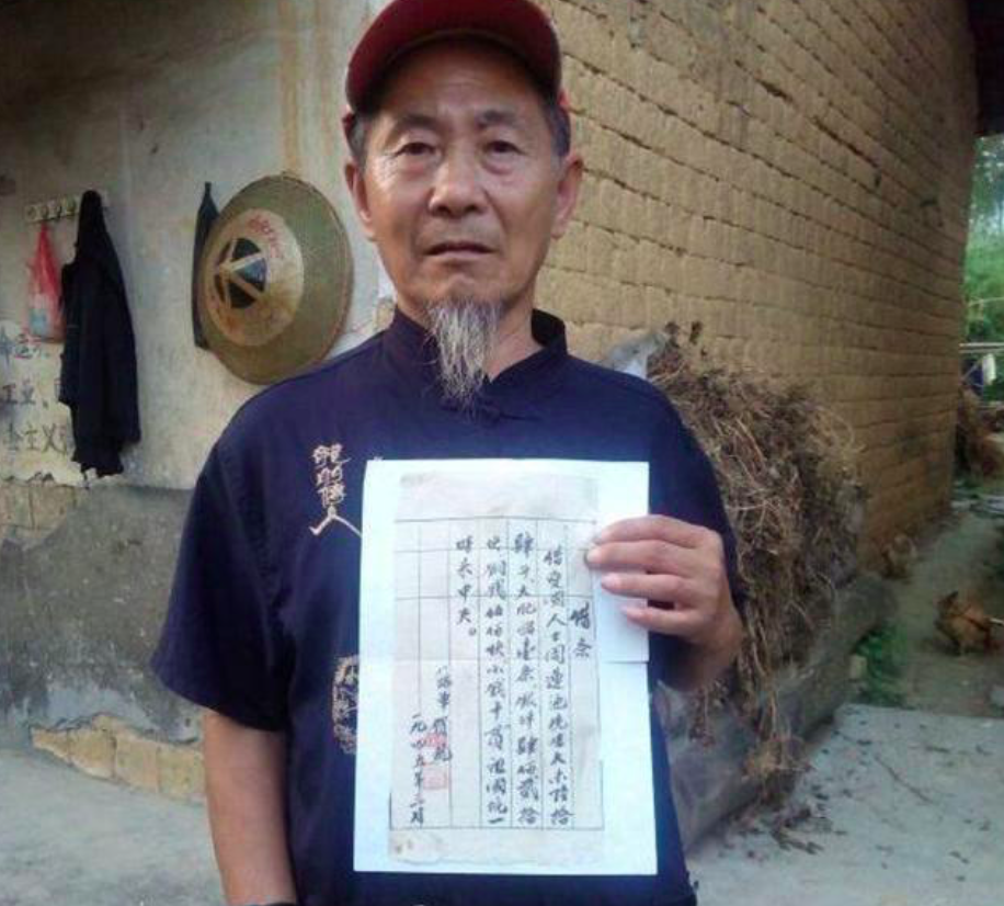 这位农民名叫郭建英,向军方借钱的是郭建英的祖父,他的祖父在当时是当地出名的大富商,在抗战时期,军方从这地方路过,由于缺乏粮食,士兵们忍饥挨饿,郭建英的祖父看到了这样的情况,拿出了家里的全部积蓄,将近1100万法币的款项用来为战士们采购粮食和物资。