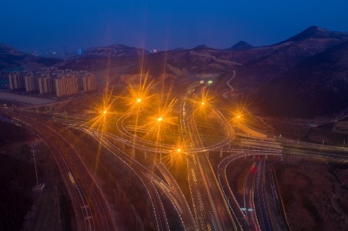 航拍的济南市最大的互通立交桥搬倒井立交桥。搬倒井互通立交桥共五层,最高处距地面24米,包括1座东延主线桥、2座南延主线桥、12条匝道和5座涵洞。整体建筑面积近10万平方米,相当于16个足球场。