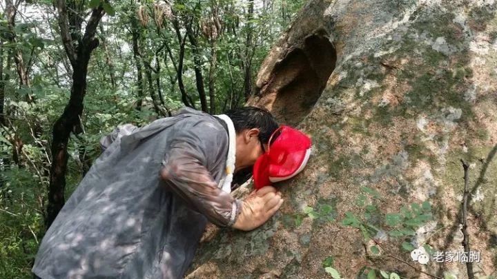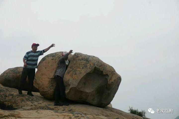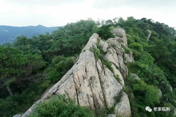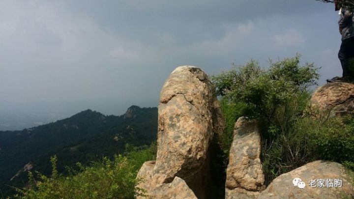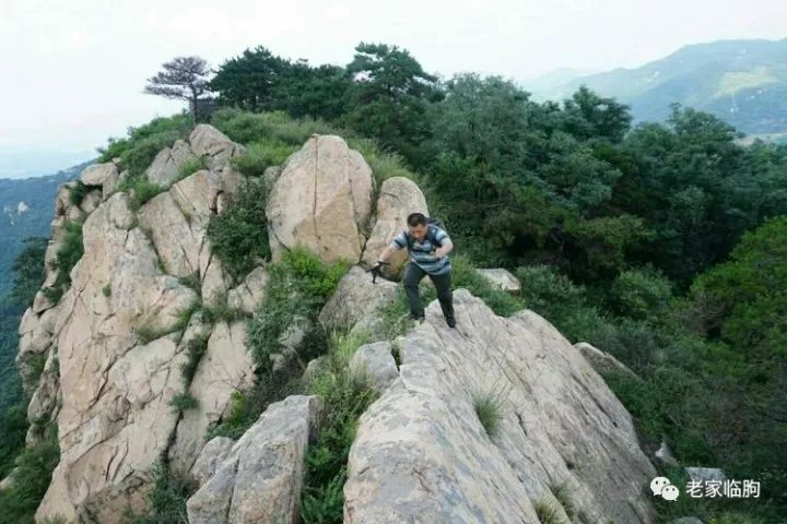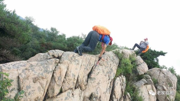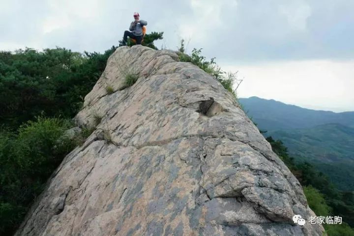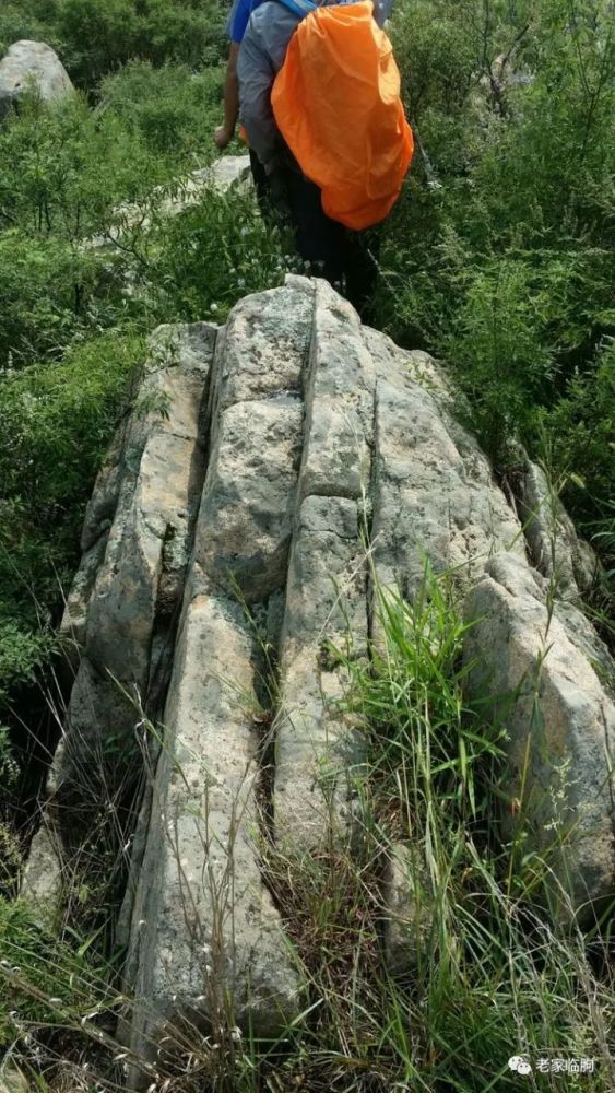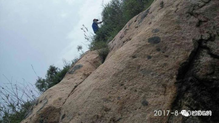 进军边崮!边崮最突出的一个字就是:险!险的你心惊肉跳,险的你无路可走!整座山只有从南端断崖上有一条险峻的攀岩路可到山上庙宇,庙宇以北,也是无路可走,整个山头都是斜插的片石。这是南端,我们是从这里下来的,而上,我们是从北侧悬崖上滑湿的岩石上硬闯出来的,可谓步步惊心,提心吊胆!