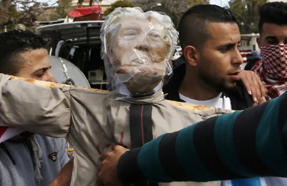 当地时间1月27日傍晚,巴勒斯坦南部城市伯利恒Deheisheh难民营的抗议民众纷纷走上街头,他们手持特朗普的画像并纵火焚烧。在巴勒斯坦国内,包括总统阿巴斯所属的法塔赫组织等多个团体纷纷呼吁民众在1月28日和29日走上街头,抗议美国和以色列推动的所谓“新中东和平计划”。