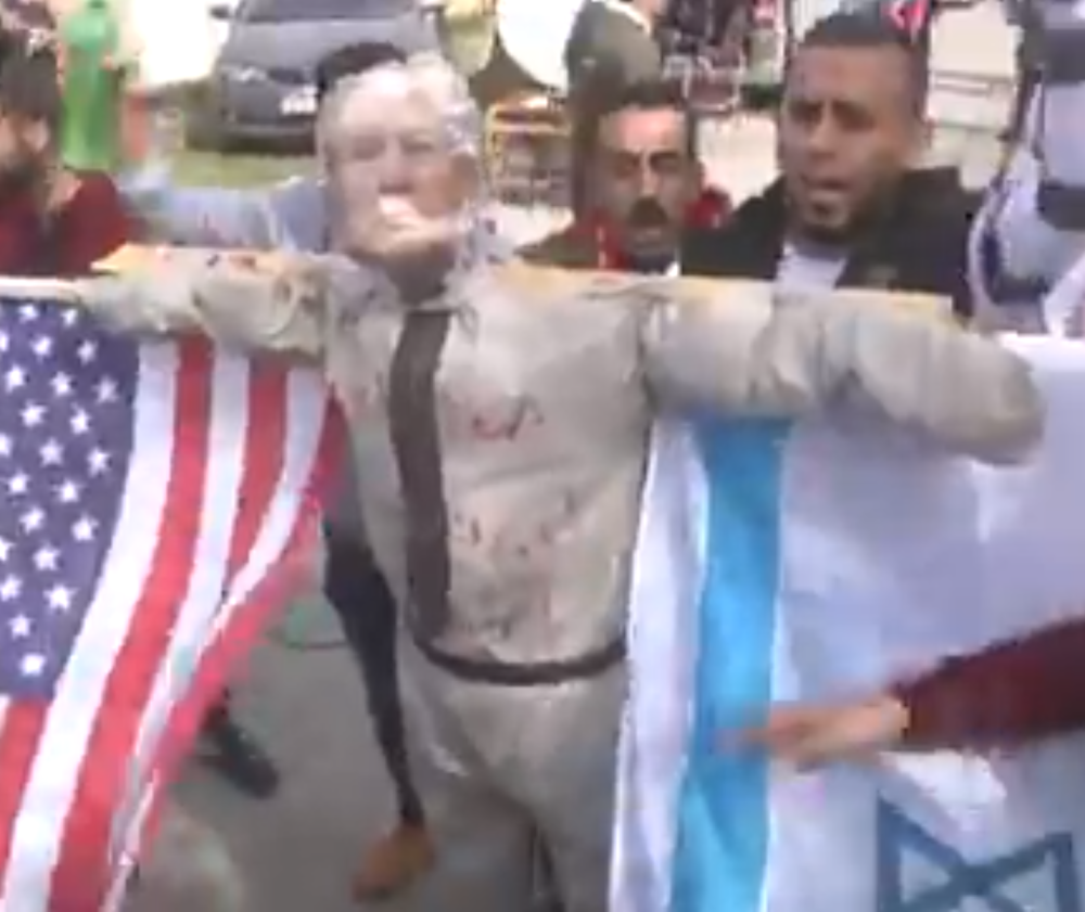 综合以色列《国土报》和法新社1月28日报道,当地时间1月27日巴勒斯坦加沙地带的抗议者将一个特朗普的人偶绑在了木架上,并在抗议游行过程中放火将这个“特朗普人偶”放火烧掉,以此来抗议美国和以色列政府推动的所谓“新中东和平计划”。